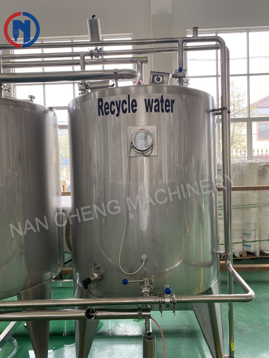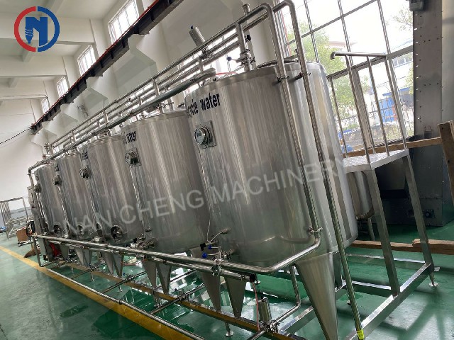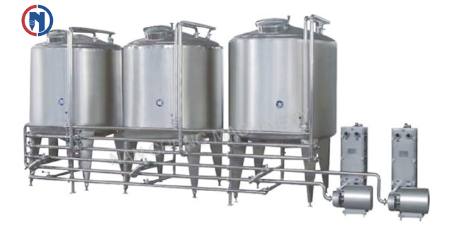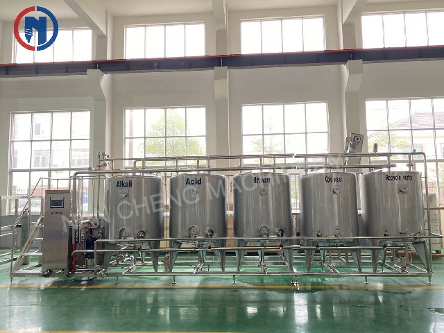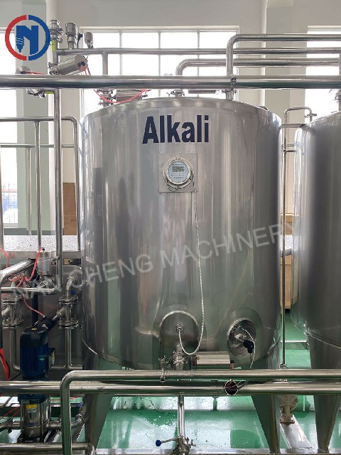 分體式CIP在位清洗設備 工作原理通過熱電阻測得溫度來控制蒸汽閥的開啟與關閉;通過壓力變送器測得液位的高低來控制水閥的開啟與關閉;通過電導率儀所測得電導率的大小來控制堿、酸隔膜閥的開啟與關閉。整體控制流程為加水加溫----堿液清洗-----熱水沖洗-----酸液清洗-----熱水清洗。